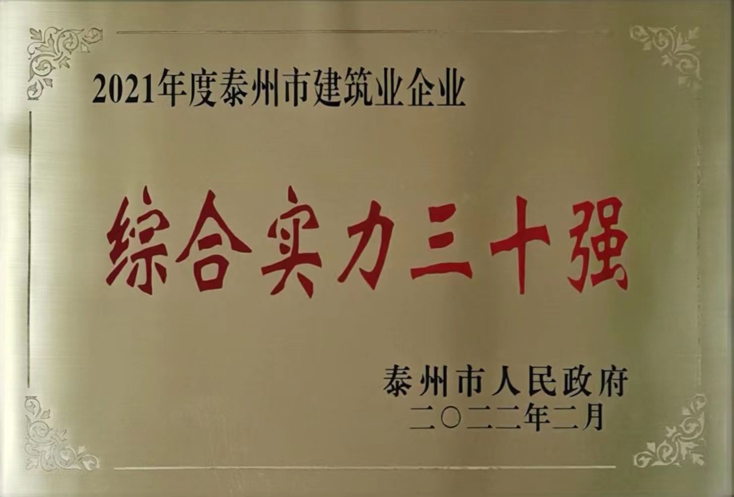 “江蘇省建筑業(yè)優(yōu)秀企業(yè)”、“江蘇省建筑業(yè)最具成長性百強(qiáng)企業(yè)”,2016年被國家工商總局授予“國家級守信用重合同企業(yè)”,2015年被全國總工會授予“全國模范職工之家”稱號,2018年被中國建筑企業(yè)協(xié)會評為“2017年度建筑業(yè)AAA級信用企業(yè)”